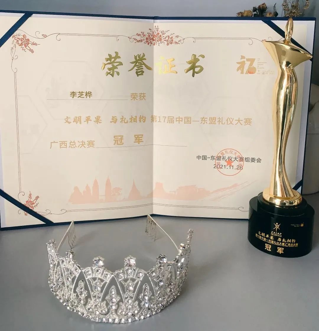 【音教喜报】公司2021级音乐教育7班李芝桦同学在第17届中国——东盟礼仪大赛广西总决赛中荣获冠军