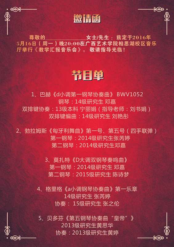 【演艺信息】beat365《高师键盘乐器的多种表演形式研究》教学汇报音乐会 来源:beat365 作者: 发布时间:2016-05-15 01:35:58 浏览次数: 次 【字体:小 大】 《高师键盘乐器的多种表演形式研究》教学汇报音乐会 时间:2016年5月16日(星期一)20:00 地点:beat365体育官网相思湖校区音乐厅 欢迎您的光临! 分享到: 【打印正文】