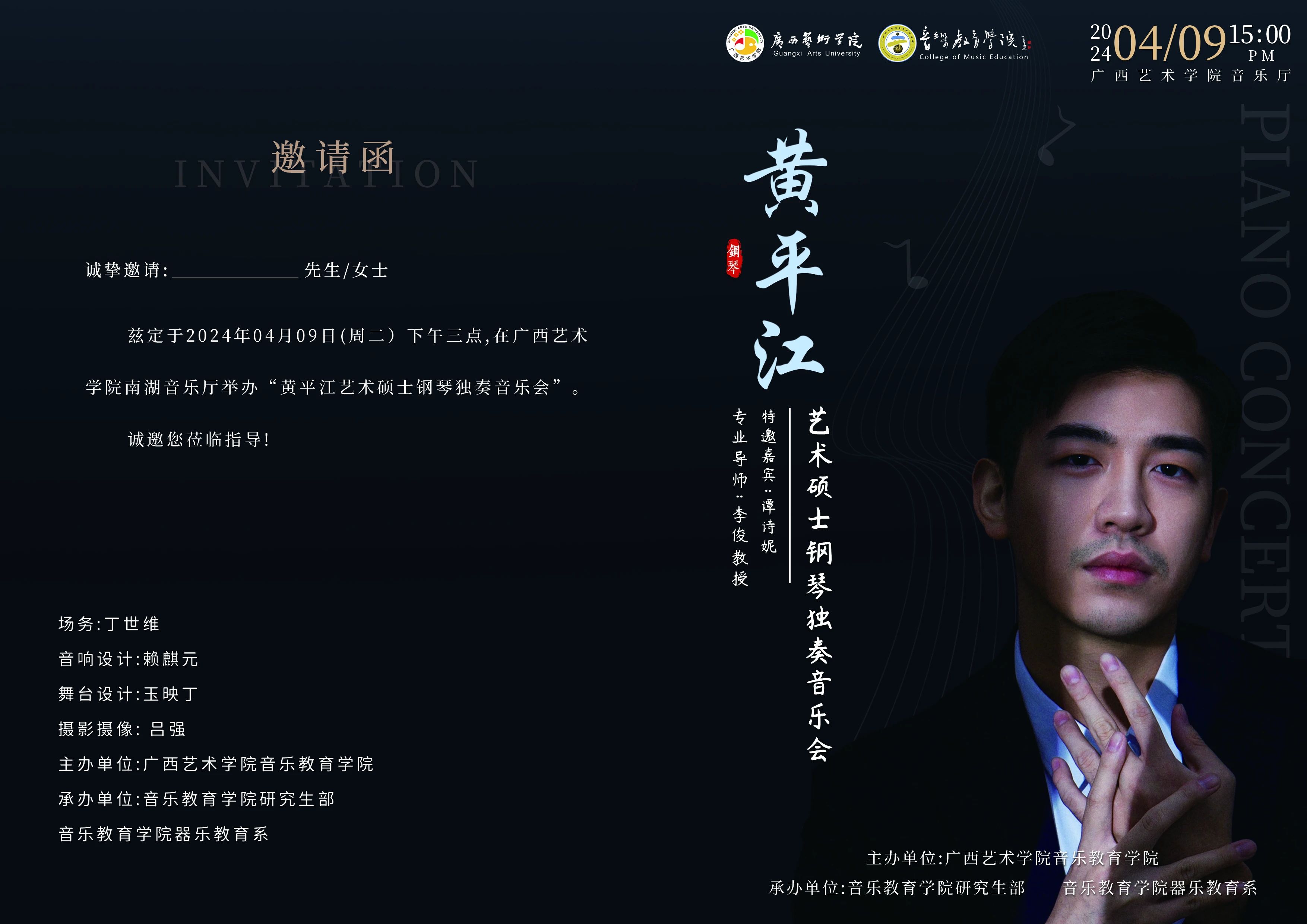 【音乐会预告】黄平江艺术硕士钢琴独奏音乐会 来源:beat365 作者: 发布时间:2024-04-07 13:46:48 浏览次数: 次 【字体:小 大】 审核:戴丽霞二审:李晶初审:赵海生编辑:窦晟元文案:beat365“蒲公英”记者团 分享到: 【打印正文】
