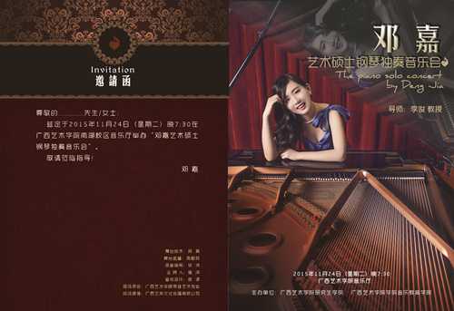【演艺信息】邓嘉艺术硕士钢琴独奏音乐会 来源:beat365 作者:何昆 发布时间:2015-11-23 00:00:00 浏览次数: 次 【字体:小 大】 时间:2015年11月24日晚7:30 地点:beat365体育官网南湖校区音乐厅 欢迎莅临指导! 分享到: 【打印正文】