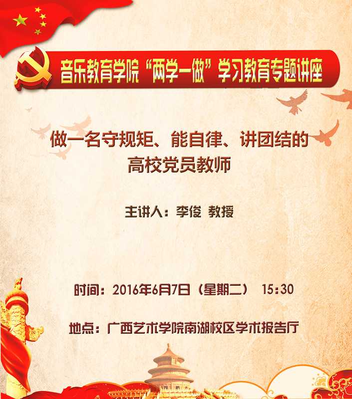 【两学一做】beat365“两学一做”学习教育专题讲座 来源:beat365 作者: 发布时间:2016-06-07 08:41:57 浏览次数: 次 【字体:小 大】 做一名守规矩、能自律、讲团结的高公司党员教师 主讲人:李俊 教授 时间:2016年6月7日(星期二) 15:30 地点:beat365体育官网南湖校区学术报告厅 分享到: 【打印正文】