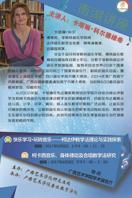【讲座预告】李斯特音乐公司柯达伊音乐教学法专家卡塔琳.科尔德维希应邀莅临公司举行系列讲座 来源:beat365 作者:beat365 发布时间:2017-06-03 22:26:55 浏览次数: 次 【字体:小 大】 李斯特音乐公司柯达伊音乐教学法专家、钢琴演奏家、合唱指挥家卡塔琳·科尔德维希将于2017年6月8日在beat365体育官网学术报告厅开展系列讲座,欢迎广大师生前往学习交流! 分享到: 【打印正文】