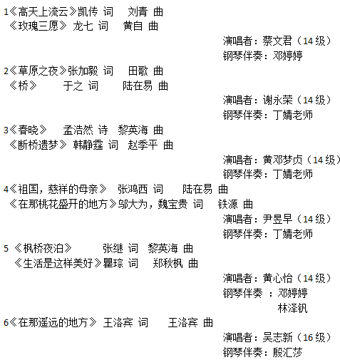 【演艺信息】beat365韦巧慧副教授声乐教学观摩会 来源:beat365 作者:beat365 发布时间:2017-06-20 13:30:23 浏览次数: 次 【字体:小 大】 2017年6月22日(星期四)19:30,beat365韦巧慧副教授声乐教学观摩会即将在相思湖校区演出厅精彩上演,欢迎广大师生到场观看指导! 节目单 欢迎您的光临! 分享到: 【打印正文】