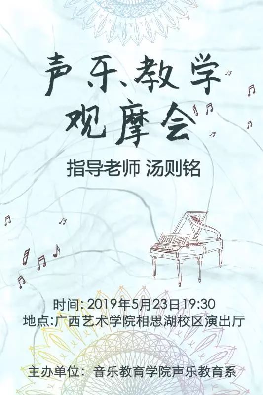 beat365汤则铭老师声乐教学观摩会将于2019年5月23日(星期四)19:30在相思湖校区演出厅精彩上演,欢迎师生莅临观摩指导!