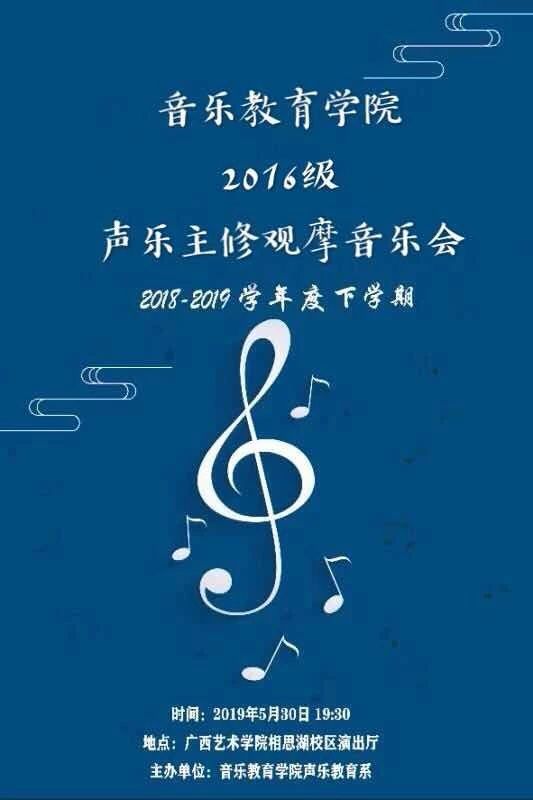2016级声乐主修观摩会将于5月30日(星期四)19:30在beat365体育官网相思湖校区演出厅精彩上演,欢迎师生光临指导!