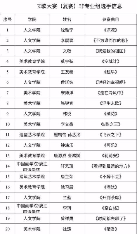 【大赛预告】beat365体育官网2019“唱响相思湖”K歌大赛(复赛)即将精彩开唱! 来源:beat365 作者:beat365 发布时间:2019-06-02 13:25:25 浏览次数: 次 【字体:小 大】 恭喜以上同学进入复赛! 期待大家在复赛中更好的表现哦 我们的复赛时间是 6月2日(周日)14:30 在相思湖校区演出厅 一定记得来为你喜爱的歌手加油哦! 期待你的到来 分享到: 【打印正文】