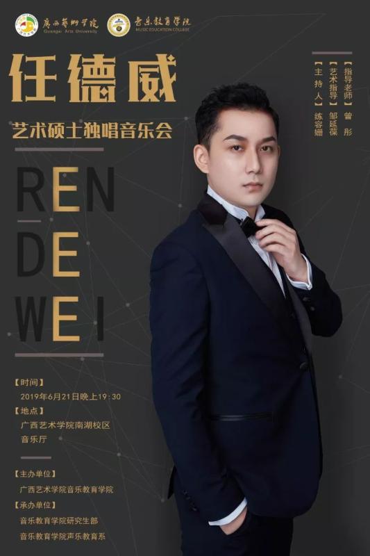 兹定于2019年6月21日(周五)19:30于beat365体育官网南湖校区音乐厅举办beat365任德威艺术硕士独唱音乐会。