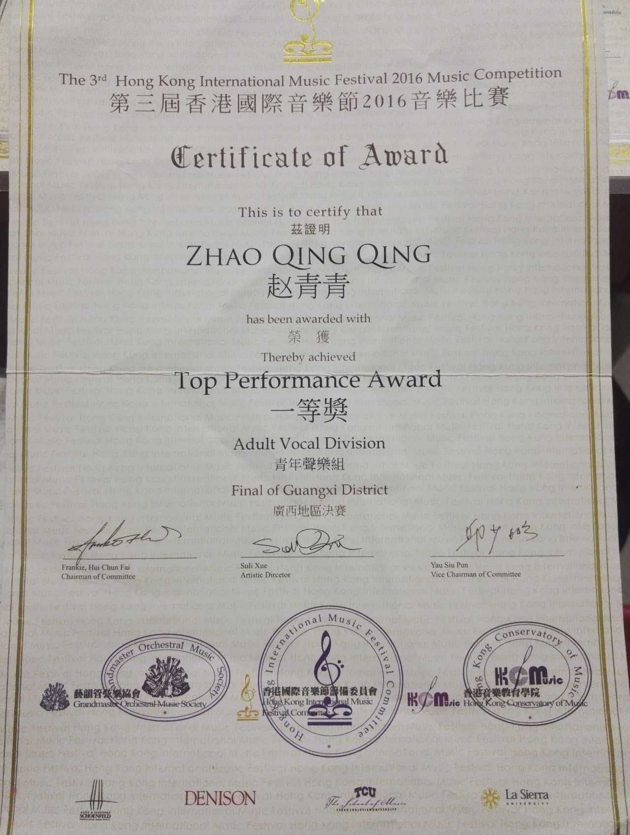 喜报:beat365员工在第三届香港国际音乐节比赛中喜获佳绩