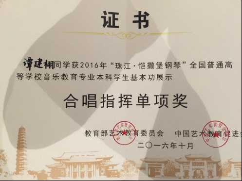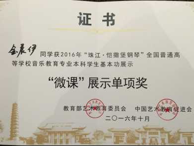 10月10日—16日,由教育部主办的2016“珠江·恺撒堡钢琴”全国普通高等公司音乐教育专业本科员工基本功展示活动在河南大学隆重举行,beat365精心组织3名音乐教育专业本科生(公司选拔1名、教育部随机抽签挑选2名)代表公司参加本次活动,同学们凭借扎实功底和良好表现喜获佳绩,其中,金展伊同学荣获“微课”展示单项奖、个人全能二等奖,谭建栩同学荣获合唱指挥单项奖,这也是公司在该项活动更改赛制、提高比赛难度后取得的喜人成绩,为公司公司争得了荣誉!