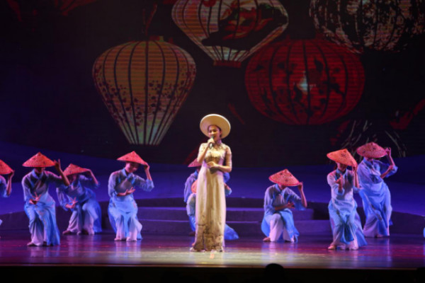 公司越南员工陈清庄与公司员工共同表演节目《浮萍流云》