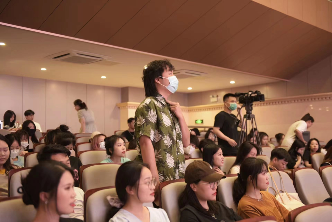 在交流互动环节,梁姚姚教授与在场的员工积极互动,真诚交流,耐心细致地解答同学们在声乐学习过程中的问题和困惑。同学们积极踊跃地发言、讲座气氛活跃。最后,由梁姚姚教授的员工进行教学成果展示,通过声乐作品演唱进一步阐释了四大要素在演唱实践过程中的重要作用。